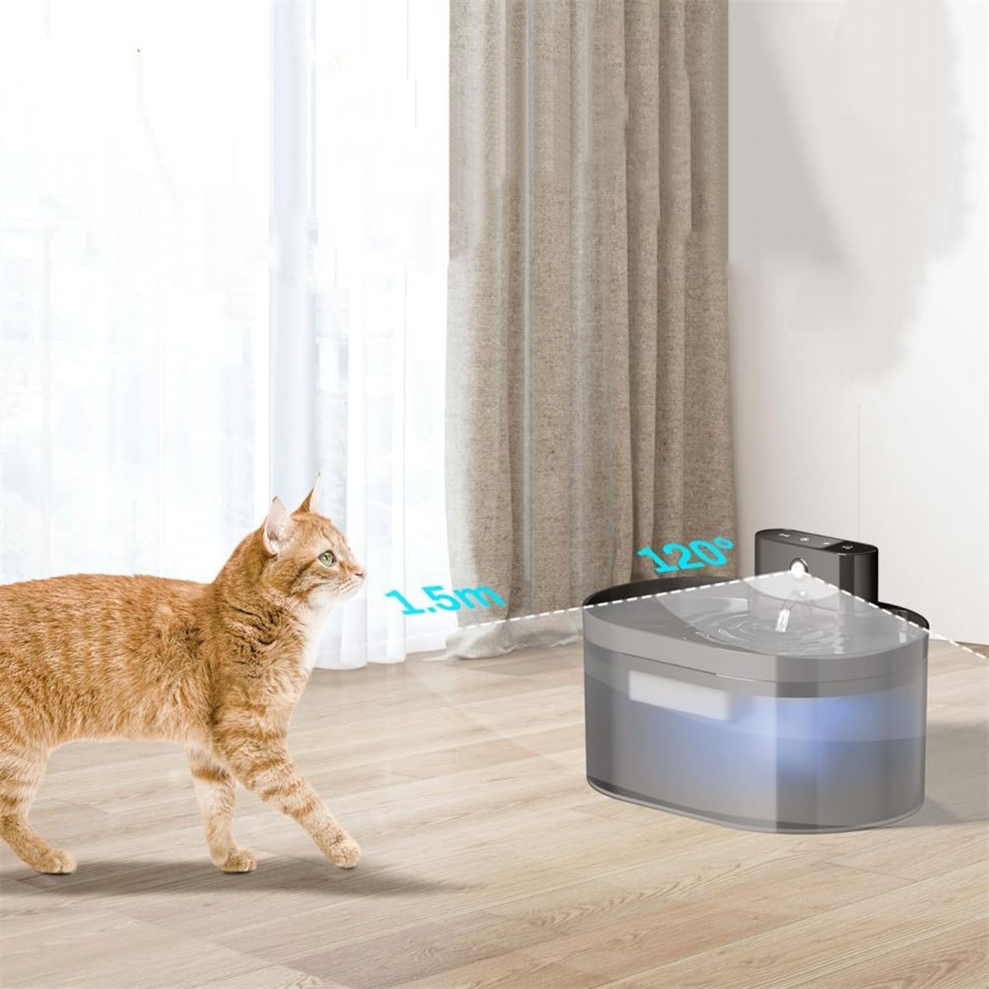 Cats love to drink from running water, and this fountain satisfies that need! Built in motion detection senses when they are near an activates the pump or set it to full time running mode.